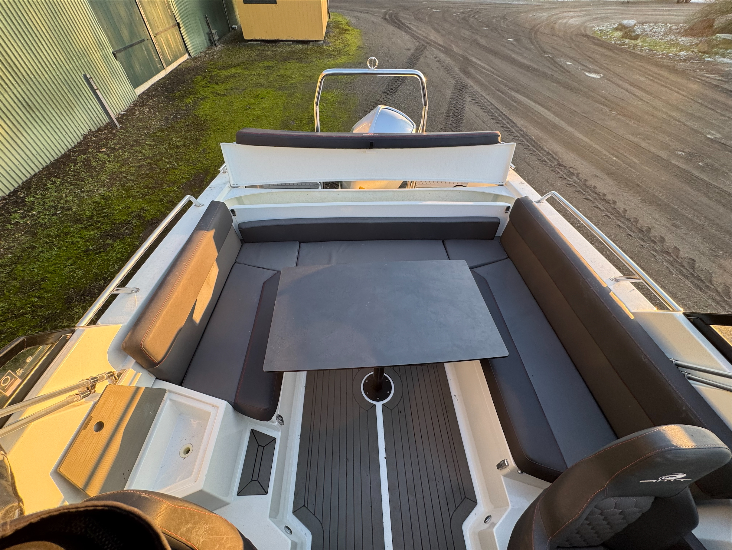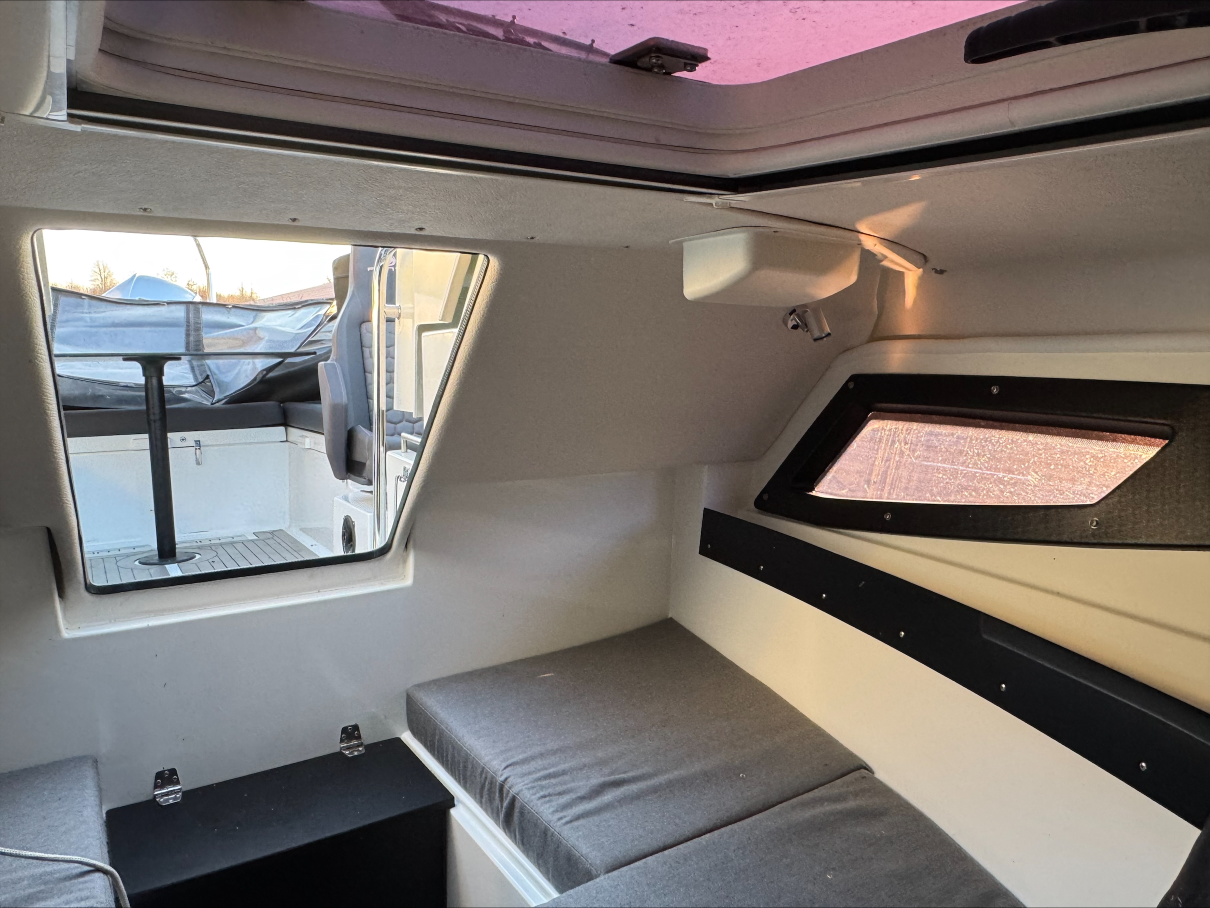 Den rummelige cockpitindretning giver med sin U-formet sofa (7 personer) gode siddepladser til familie og gæster, og der er let adgang til badeplatformen, som gør badning og vandsport nemt og sikkert. I forkahytten finder du overraskende god plads med mulighed for overnatning, dry storage og praktisk opbevaring.