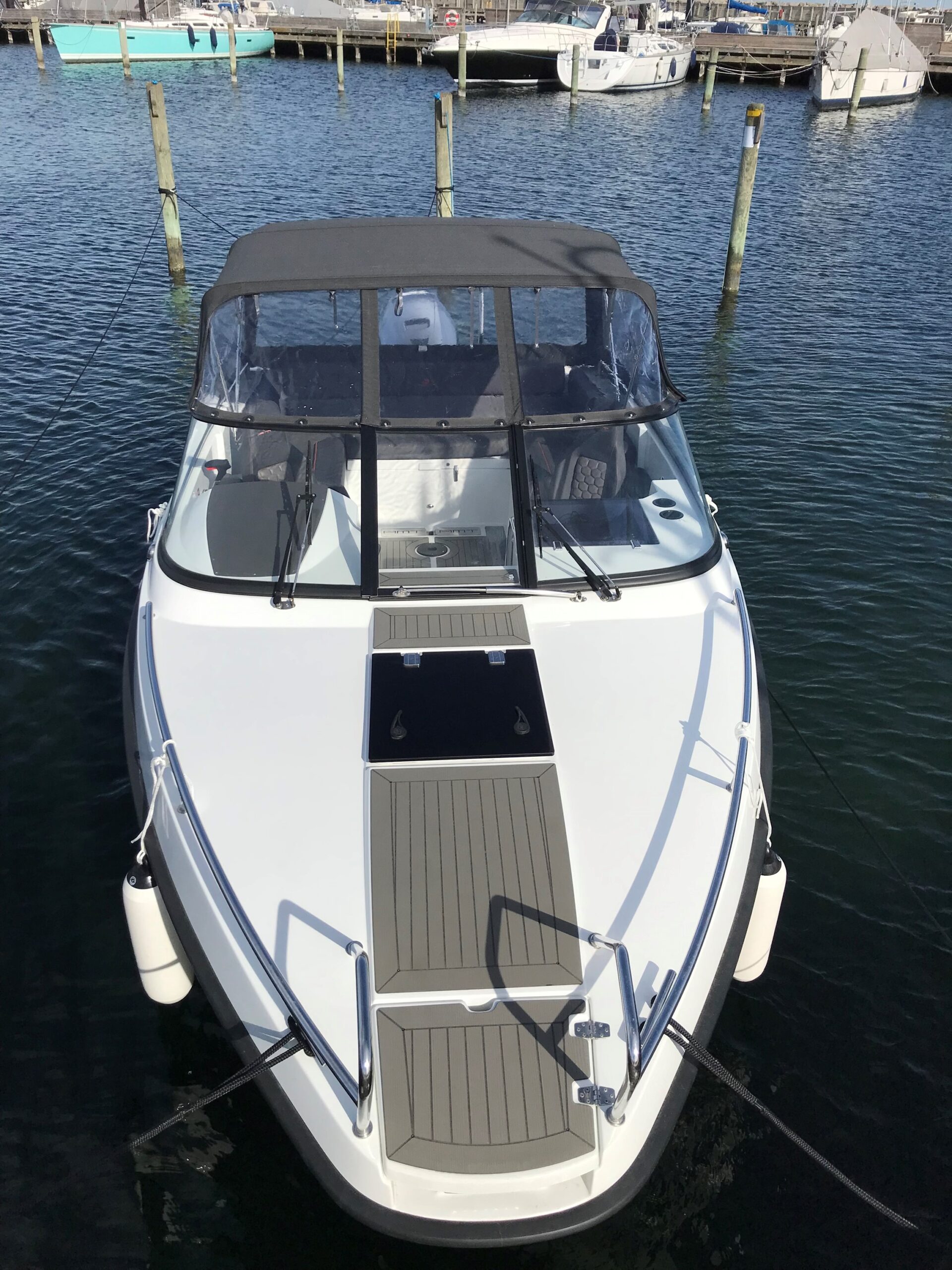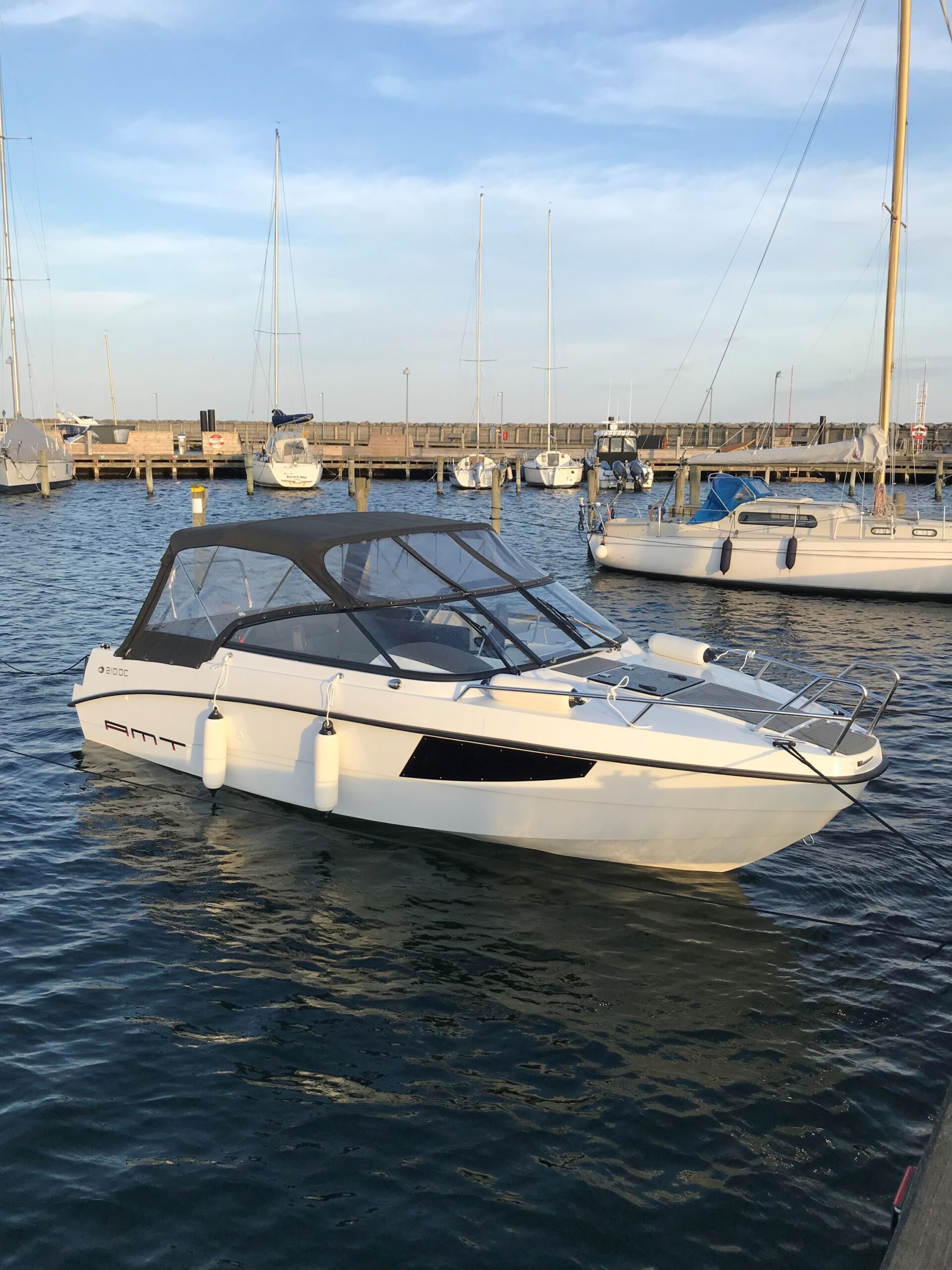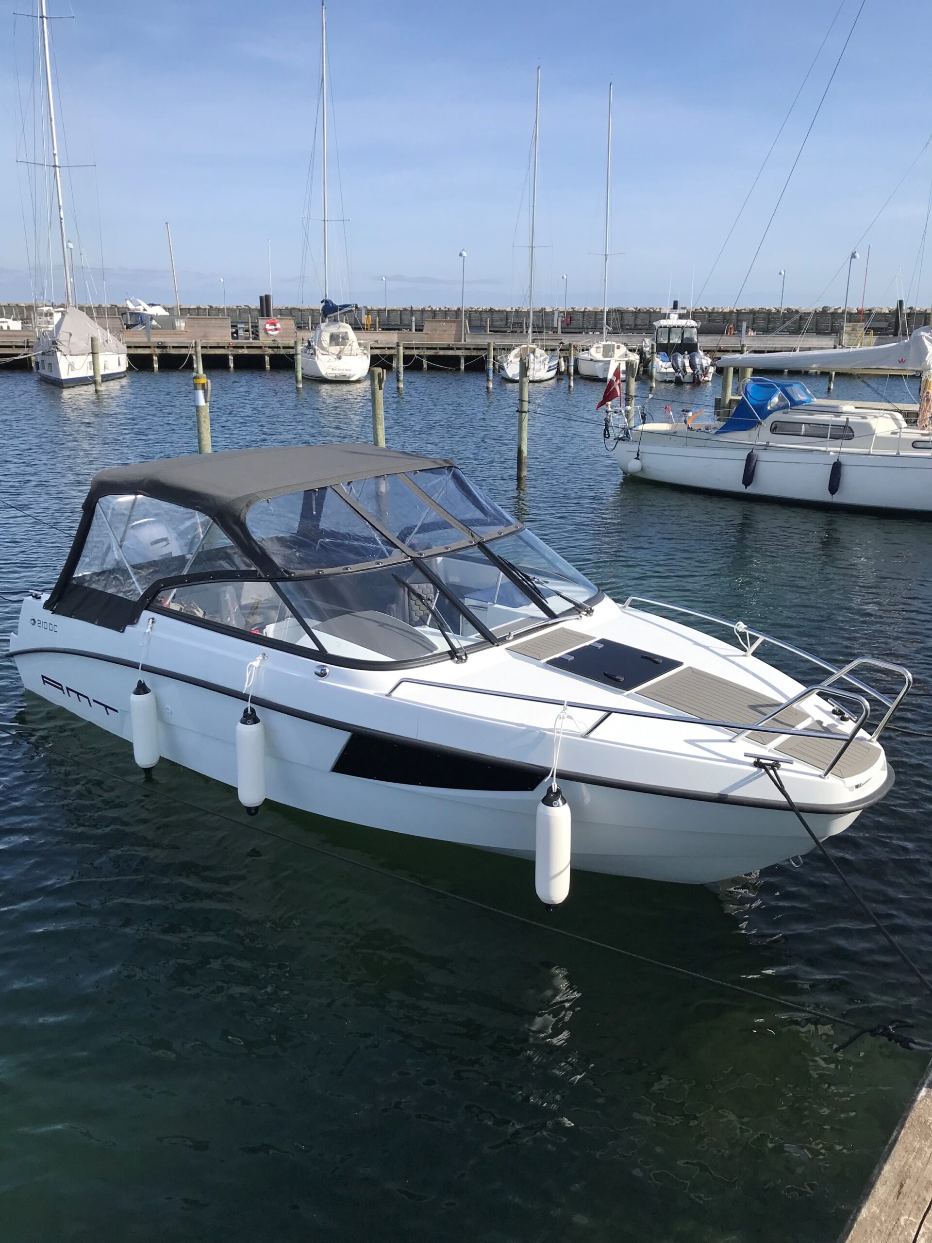 AMT 210 DC er en af de mest populære daycruisere i sin klasse – kendt for høj kvalitet, gennemtænkt finish og imponerende sejlegenskaber. Båden tilbyder en perfekt kombination af sport, komfort og funktionalitet, hvilket gør den ideel til både familieture, vandsport og afslappede dage på vandet. Den rummelige cockpitindretning giver med sin U-formet sofa (7 personer) gode siddepladser til familie og gæster, og der er let adgang til badeplatformen, som gør badning og vandsport nemt og sikkert. I forkahytten finder du overraskende god plads med mulighed for overnatning, dry storage og praktisk opbevaring. AMT 210 DC leverer en stabil, tør og behagelig sejlads – selv når forholdene bliver mere krævende. Det gennemarbejdede skrog, den ergonomiske førerplads og det høje komfortniveau gør den til et oplagt valg for både nye og erfarne sejlere. For yderligere fotos af modellen, se linket her: https://www.amtboats.com/boat-models/daycruiser/amt-210-dc