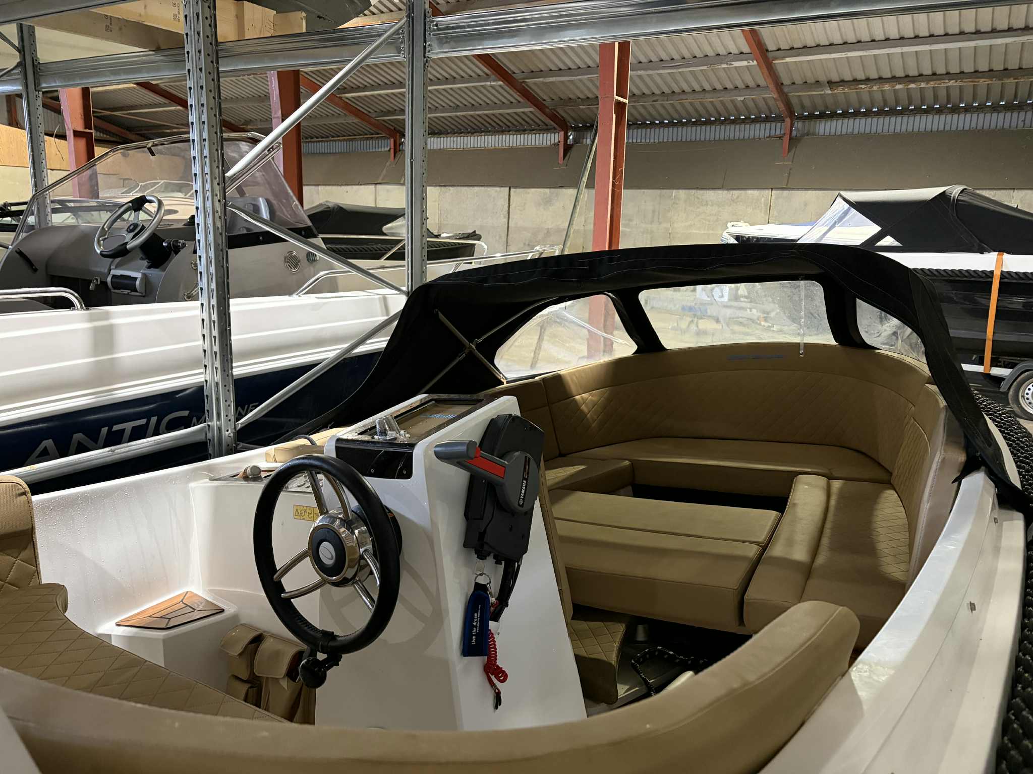 Corsiva 595 er den perfekte båd til rolig kanal og fjorde: let at styre, stabil ved lave hastigheder og utrolig nem at håndtere i smalle passager. Med rummeligt cockpit, gode siddepladser og en lille kahyt, der giver mulighed for opbevaring eller afslapning, er den ideel til hyggelige dagsture og stille sejlads for hele familien.